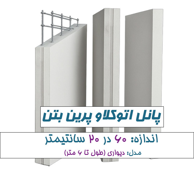 پانل مسلح دیواری AAC پرین بتن (یک لایه مش) ۶۰ در 20 سانتی متر