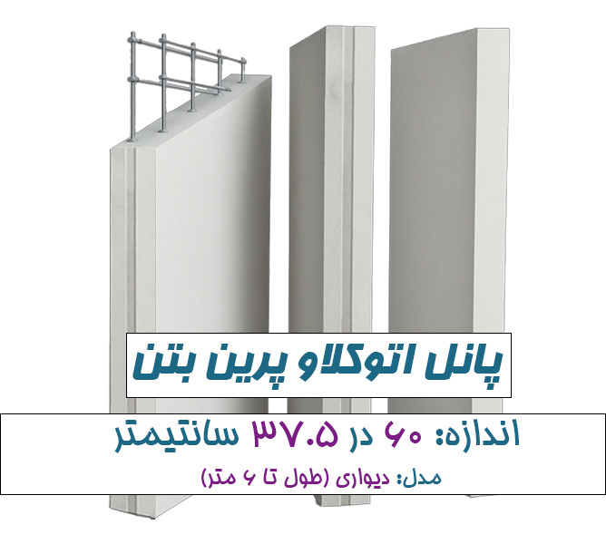 پانل مسلح دیواری AAC پرین بتن (دو لایه مش) ۶۰ در 37.5 سانتی متر | متر مربع