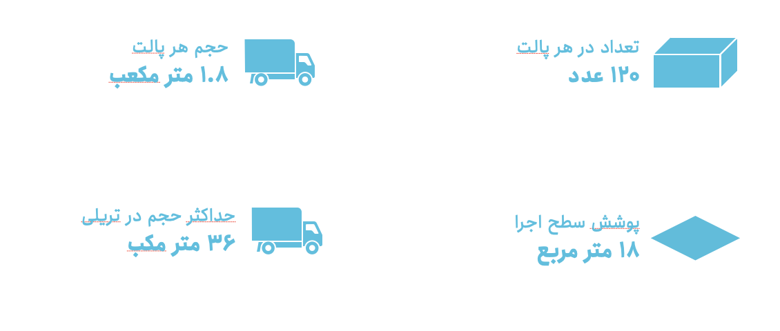 سفارش شما به همراه پالت هایی با استاندارد اروپایی ارسال خواهند شد و در صورت عودت پالت ها به کارخانه هزینه آن ها برگشت داده خواهد شد.